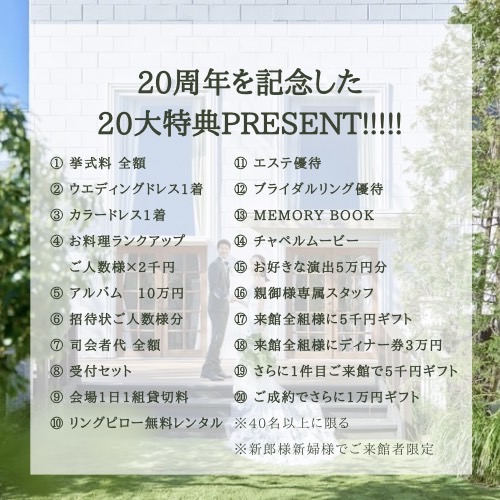 \20thBIG/ドレス&挙式料など20大特典♪和牛試食×8万ギフト
