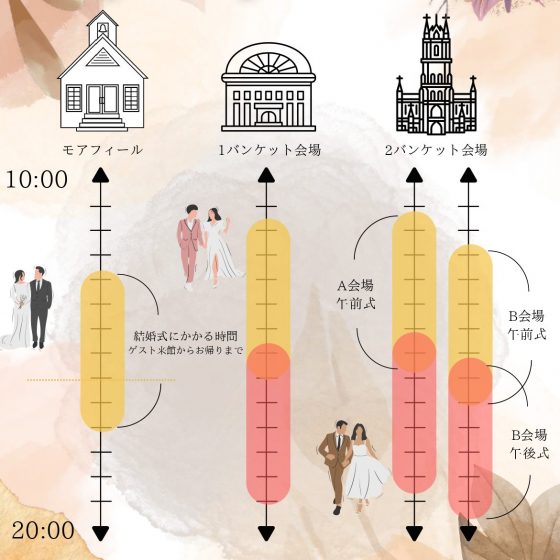 結婚式はお昼、2次会は夕方~夜にかけて、、など