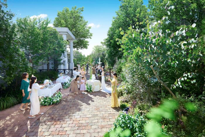 \披露宴中にガーデンに出ての乾杯セレモニー/