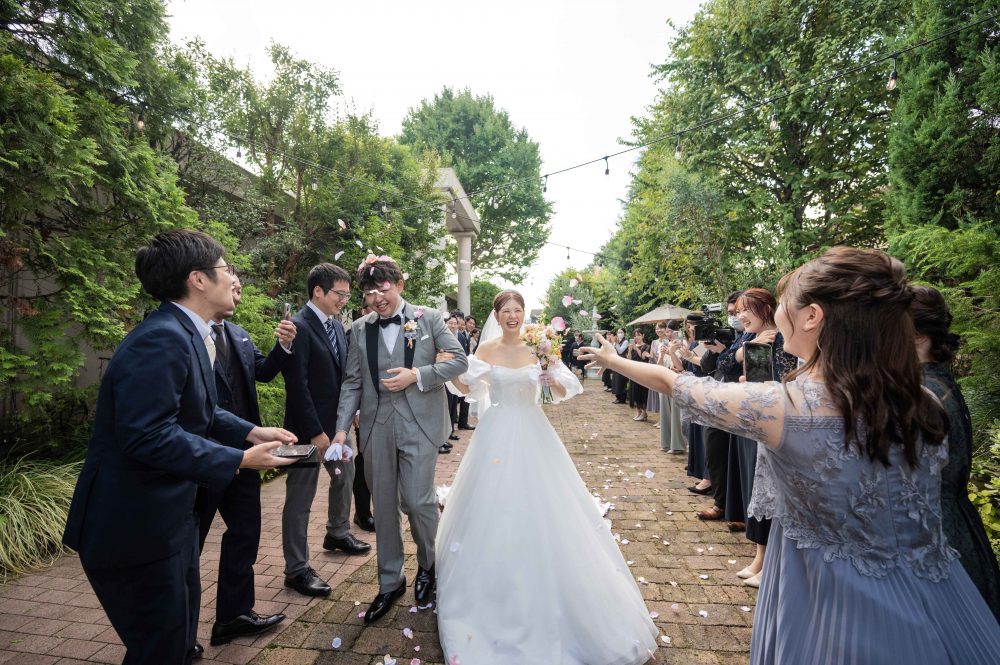 フラワーシャワーの写真も、まるで緑の花道のようですね!