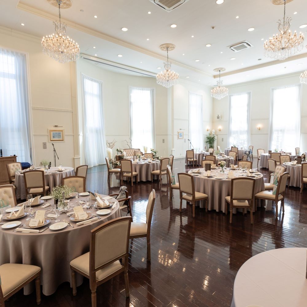 披露宴会場も開放的で100名規模のゲスト数も
