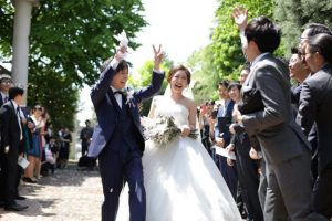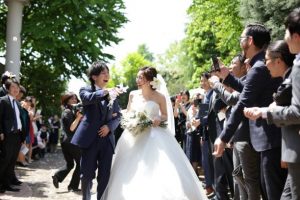 大切な方々からの「おめでとう!」の声に最高に幸せな笑顔で応える新郎新婦様♡
