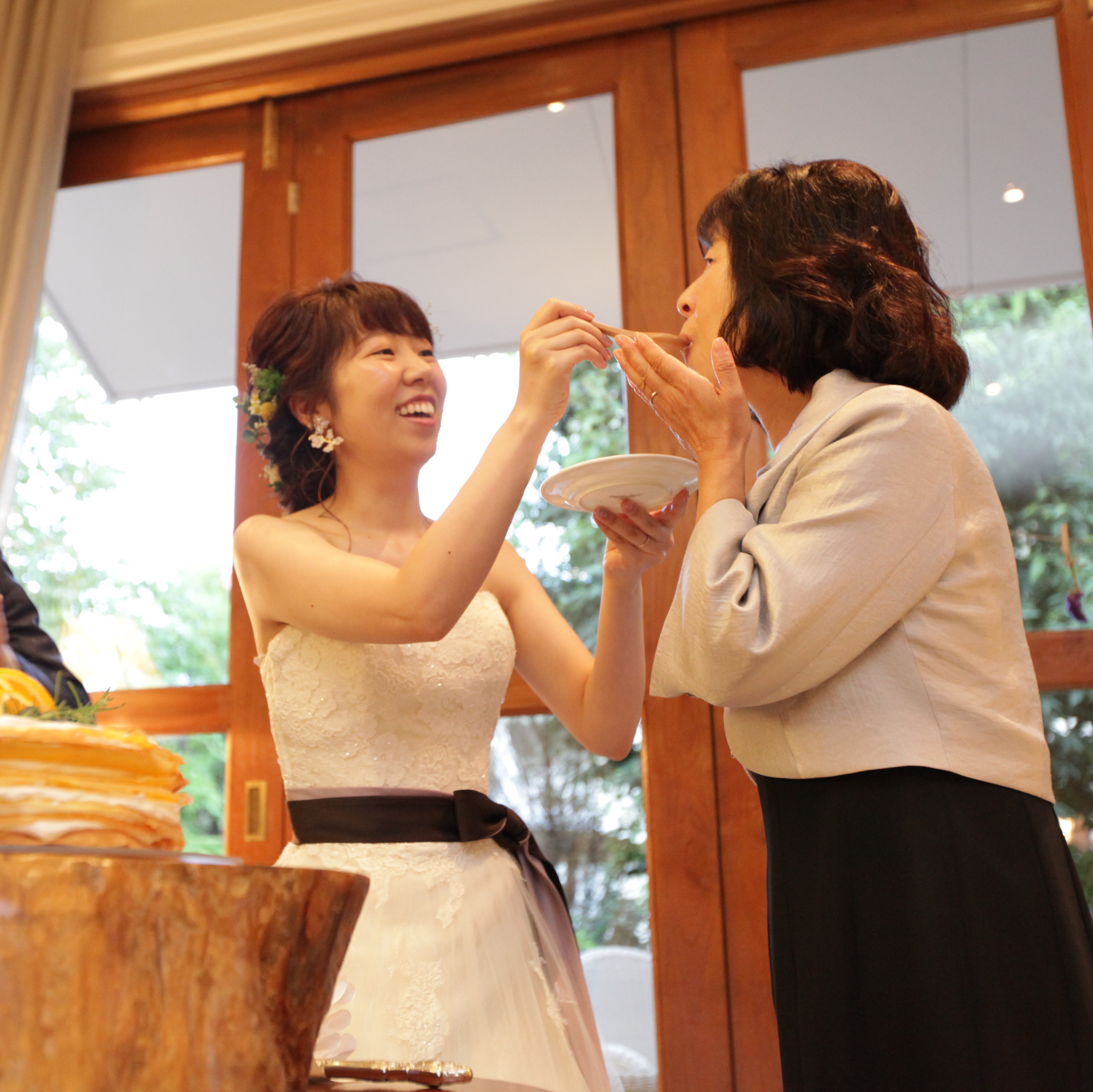 ウエディングケーキを新郎新婦様で食べさせ合っていただくセレモニーです♥