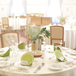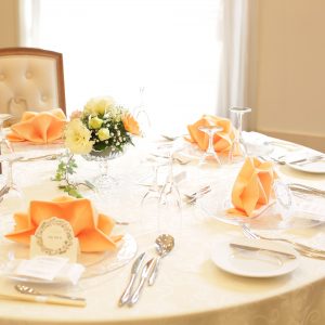 モアフィールのパーティー会場は、ブラウン×オフホワイトのシンプルなお色味です!