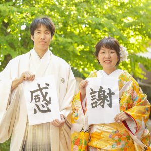 習字でお好きな文字を書いて一緒に撮るアイデアも和装とぴったりですね♪