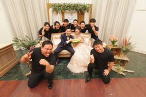 こちらのお写真は新郎様と職場の方々がラグビーのハカを踊っております♪♪