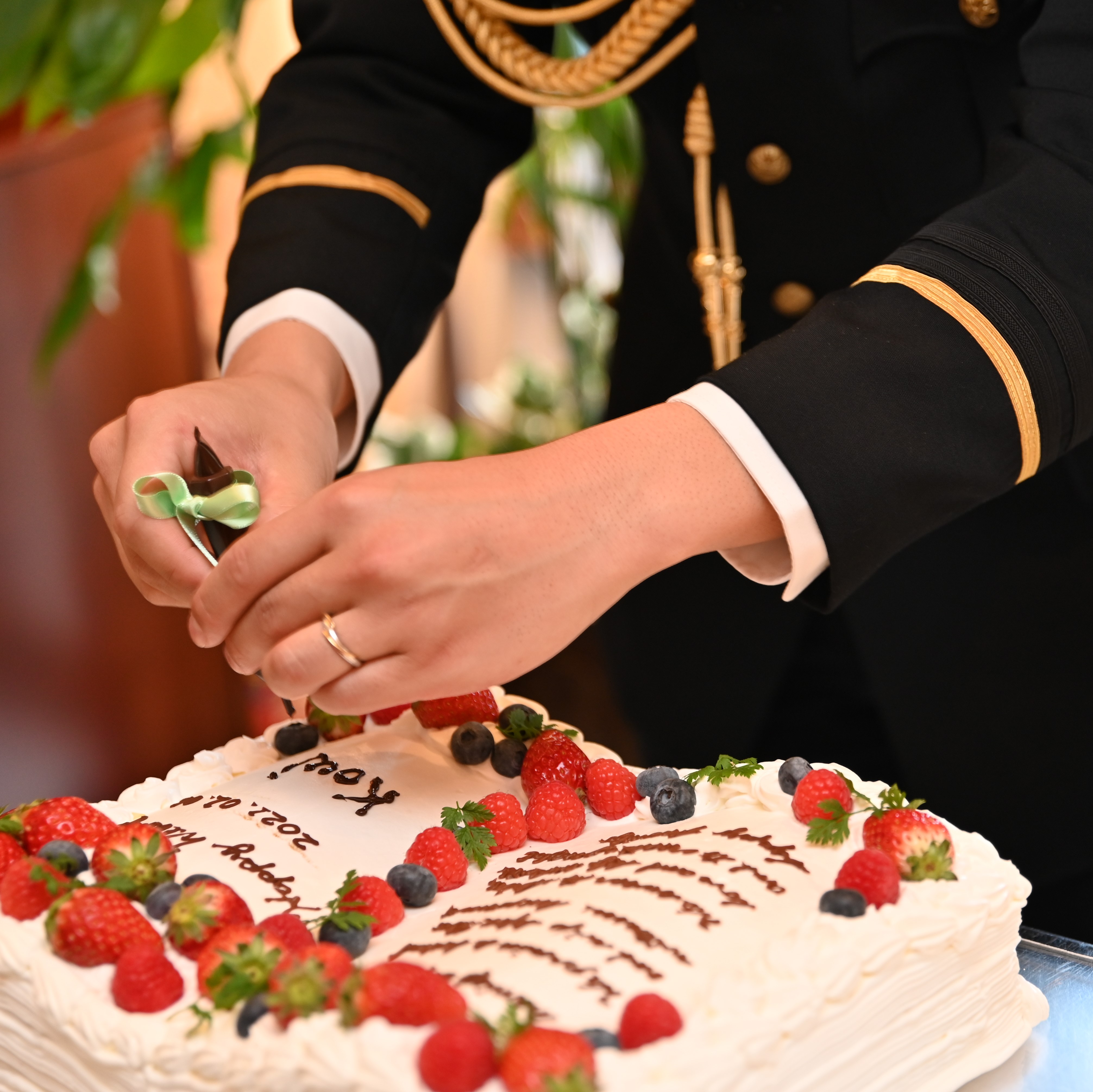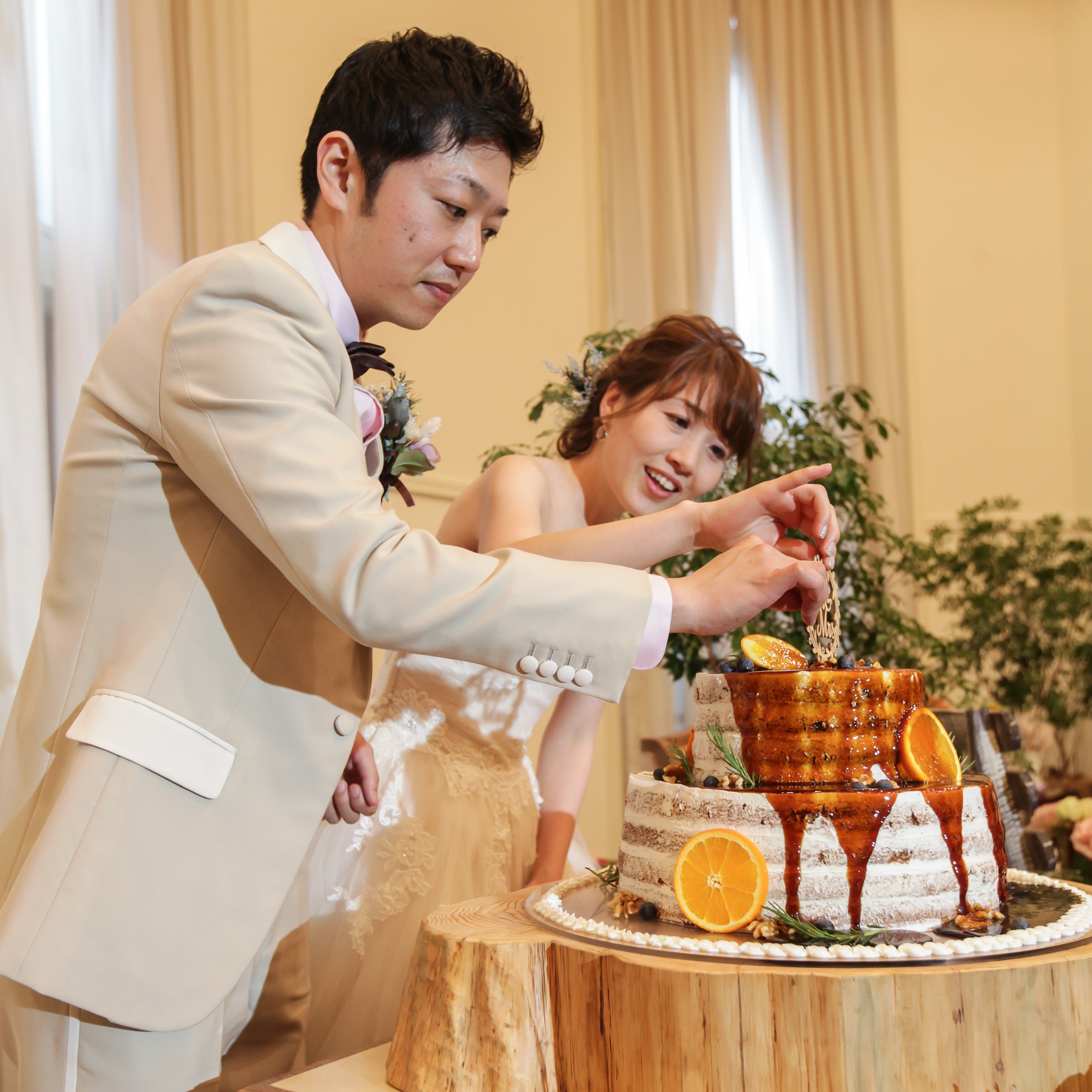 結婚式の定番演出のウェディングケーキセレモニー。 ケーキ入刀のシーンはゲストにとっても 楽しみなシ...