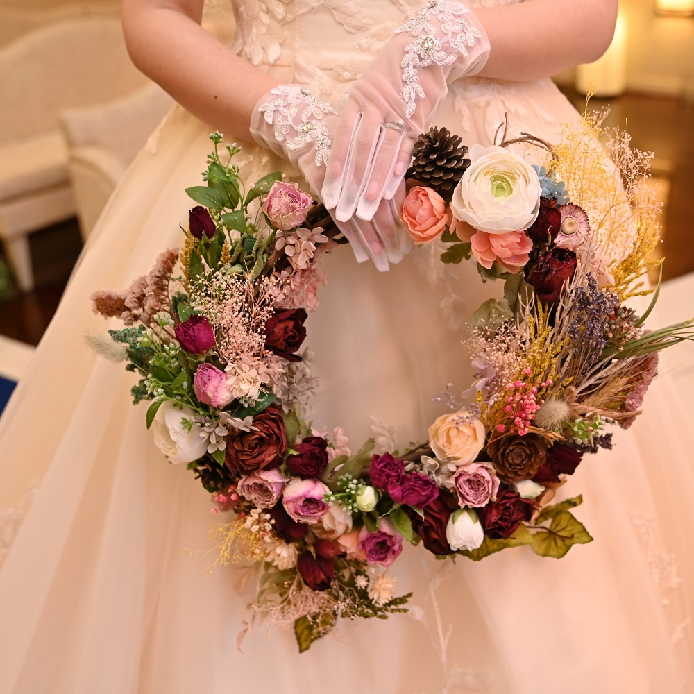 週末に行われたご結婚式のブーケをご紹介します♡ 皆さまは「リースブーケ」をご存じでしょうか? リース(...