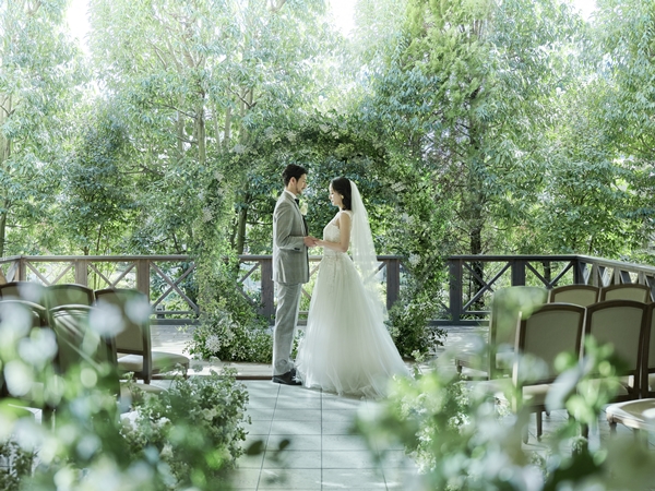 貸切邸宅ではチャペル以外にも、陽だまりの中を緑のそよ風が吹き抜ける空間で、プライベート感あふれるセレモニーを行えます。光や風も祝福するナチュラルでアットホームな空間は、永遠の愛を誓うおふたりをやさしく包み込みます。