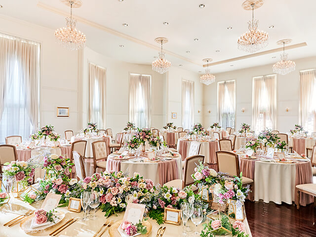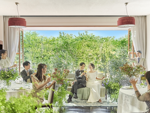 緑と陽光あふれるガーデンを中心に、居心地のよいラウンジやファミリールーム、ゆっくりとお支度いただけるブライズルームなど、おもてなしを叶える充実の設備をご用意しています。また、館内は完全バリアフリー対応ですので、大切なゲストの皆様にも安心してお過ごしいただけます。