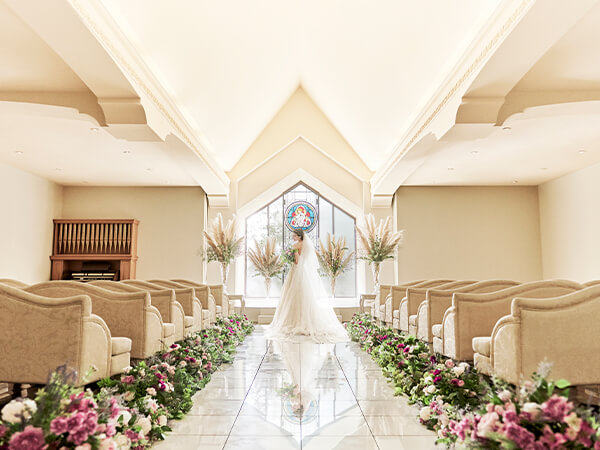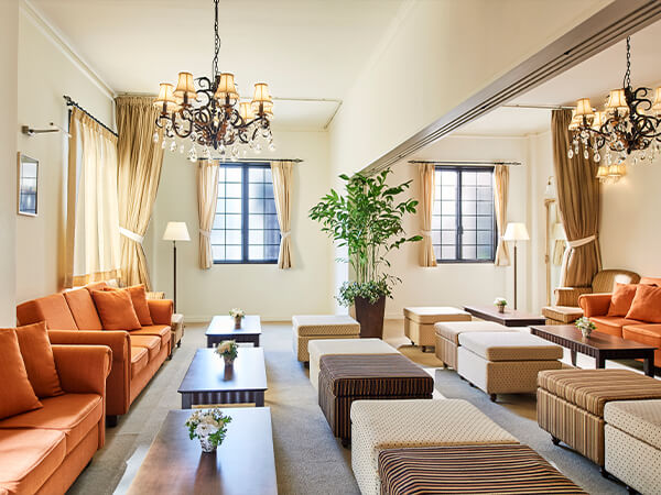 ゲストを最初にお迎えするのは、あたたかい雰囲気に包まれたラウンジ。ソファ席でのドリンクサービスなど、挙式の合間にもゲストに心地よい時間をお過ごしいただけます。ふたりの思い出の写真やアイテムを自由に飾って、この空間を我が家のようにしてしまうのもおすすめ。アットホームなウエルカムパーティー、アフターパーティーにもお使いいただけます。