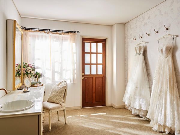 ゲスト専用のフィッティングルームを、男性・女性用の計2か所ご用意しております。遠方からのゲストにもゆっくりとお支度していただけるほか、余興をされるお客様のご準備にもご利用いただけます。
