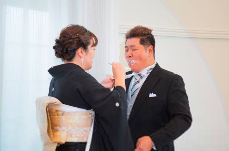 ウエディングケーキ入刀後の【ファーストバイト】は