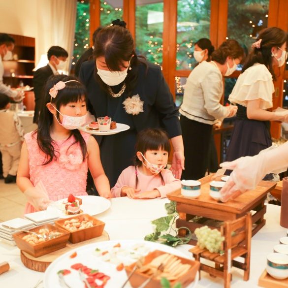 各テーブル4名以内で、間隔も空けてゆったり配置できた披露宴会場は、コロナ禍でも安心できる環境にぴったりでした。