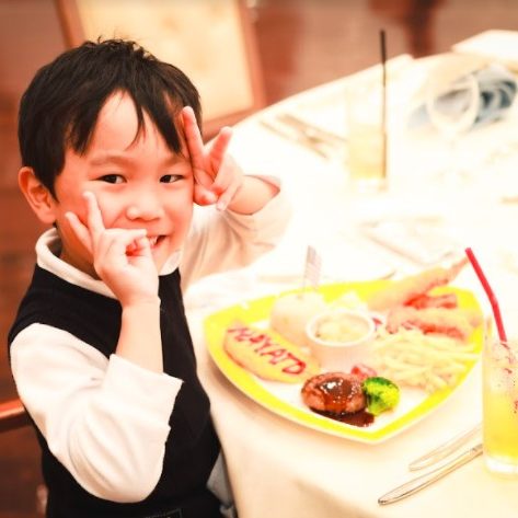 それから、披露宴での乾杯の音頭を新郎の甥っ子君にお願いしました!5歳児の元気いっぱいの「乾杯〜♪」は一気に場を和ませてくれたので、大成功でした!