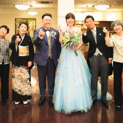 また、新型コロナウイルスという厳しい状況下でしたが、司会者様からゲストに向けて披露宴前に感染予防対策についてのご説明や、テーブル間の間隔を広げたり、テーブル上にアクリル板.消毒の設置、こまめな室内の換気、などなど感染予防対策を万全にして頂いたので、安心して披露宴を行えました。