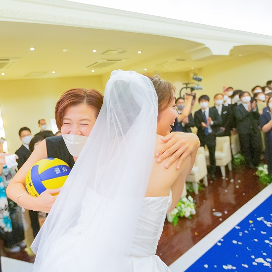 打ち合わせは月に1回から2回を目安に進めてもらいました。仕事で忙しくなりそうな時期なども配慮してくださって、余裕をもって打ち合わせが進められました。担当のスタッフの方が常に寄り添って打ち合わせを進めてくれたので、本当にありがたかったです!!当日の披露宴の流れを決めるときが一番楽しく、友人へのケーキバイトサプライズや再入場のときのサプライズなど、考えているときからワクワクしていました。当日をいかに楽しく迎えることができるか?時間をかけて一緒に考えてもらえたおかげで、当日もおもいっきり楽しい時間が過ごせました!!担当スタッフのまこっちゃんはいつも明るくて、温かい対応をしてくれて感謝の気持ちでいっぱいです。まこっちゃんの笑顔から元気をたくさんもらっていました!!