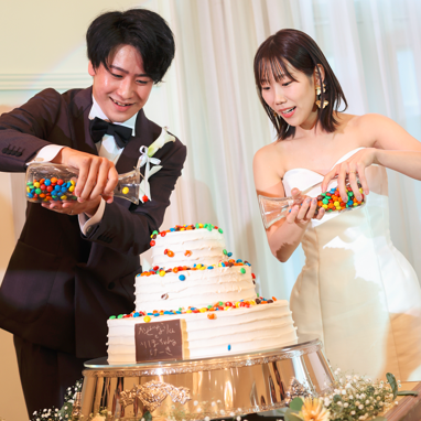 ウエディングケーキも勿論見たことのないマーブルチョコドリップ!
