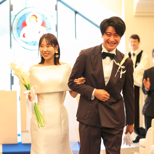 バージンロードを一緒に歩くお父様の表情には、理帆さんへの想いが滲み出る感慨深いお姿でした。
