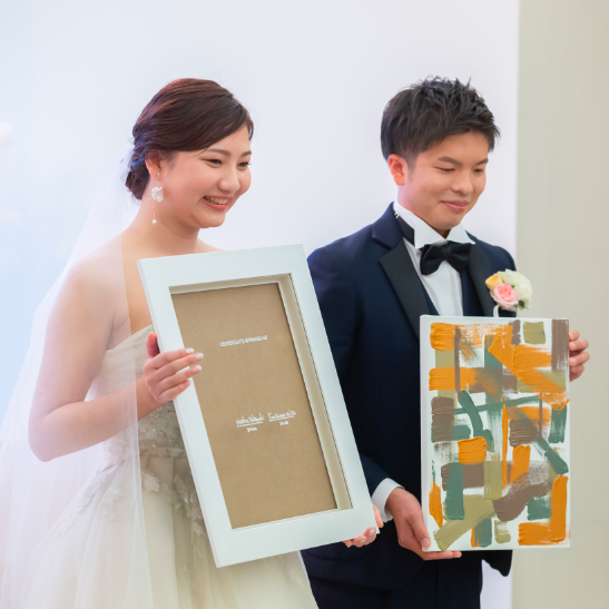 ネットで見て、一目惚れしたウェディングキャンバスを人前式の結婚証明書に。