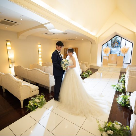 チャペルも通常は縦に長いイメージですが、横にも広く、自分たちとゲストの距離感が近く感じたのも、魅力的でした。