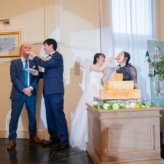 自分たちらしさを出すために、ケーキではなく、食パンタワーを行いました。
