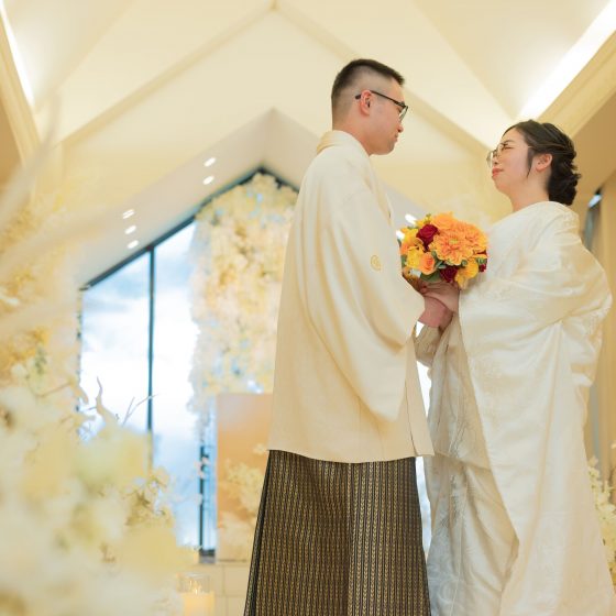 明るい雰囲気で家族と暖かい空間で楽しく団欒とした挙式・披露宴をテーマとして選びました。