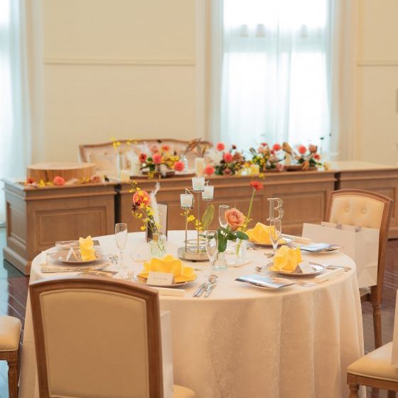 テーブルラウンドをとりいれゲスト各卓へお話したり写真を撮る時間をたくさん作れるようにしました!!