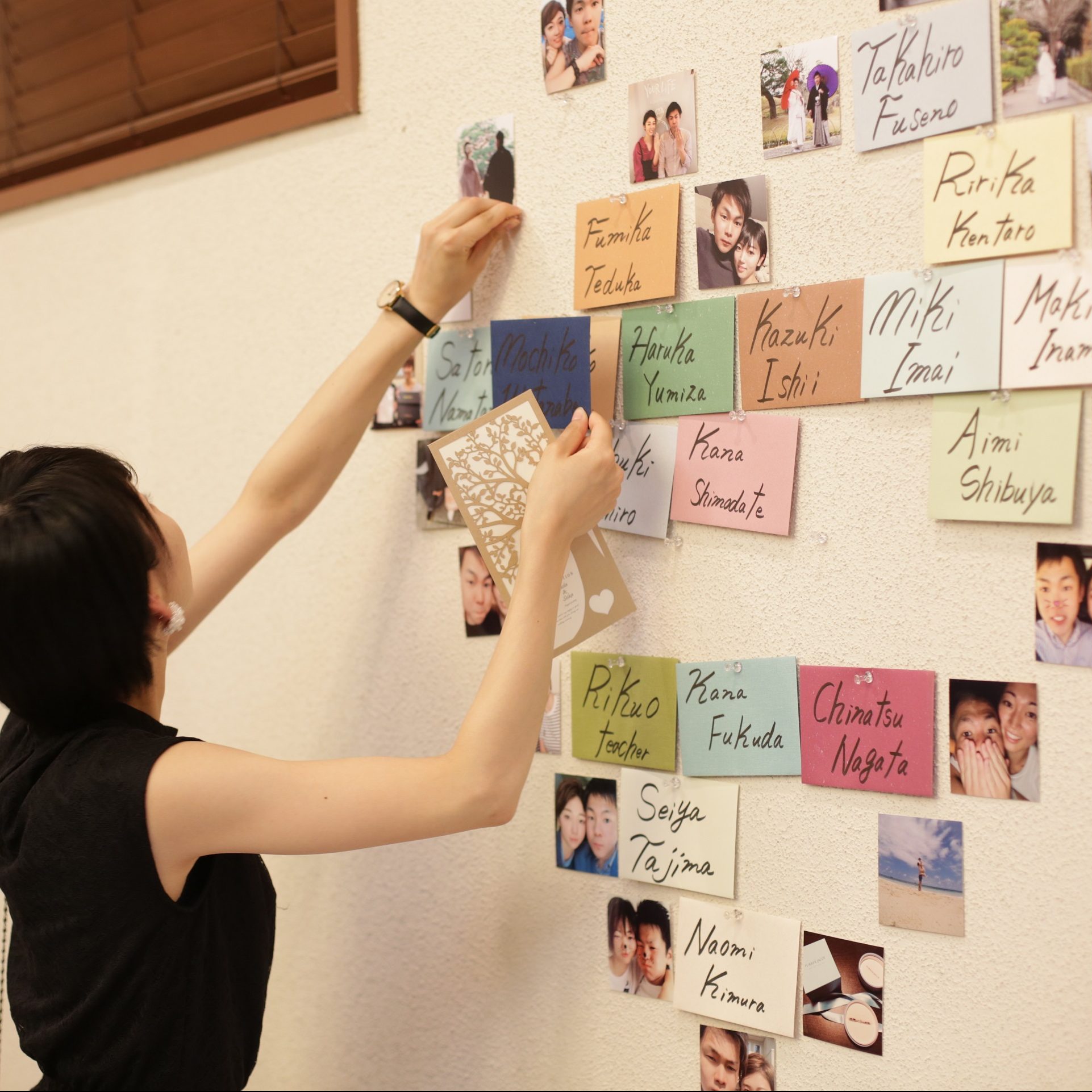 ザ・結婚式 のような、ゴージャスな式にしたくなかったので、テーマはラスティックパーティーにしました。人前式にして、『新婦が鬼嫁になっても、変わらず愛し続けることを誓います』『新郎よりイケメンがいても、見ないようにします』など、自分達のオリジナルの言葉でゲストに誓いました。結婚証明書は、事前に受付に置いておき、ゲストにキスマークを貰い、それを承認のサインとしました。自分達も人前式で、代表の人に口紅を塗ってもらい、証明書にキスマークをして、結婚のサインとしました。世界でたった一つのオリジナルの結婚証明書が出来ました。