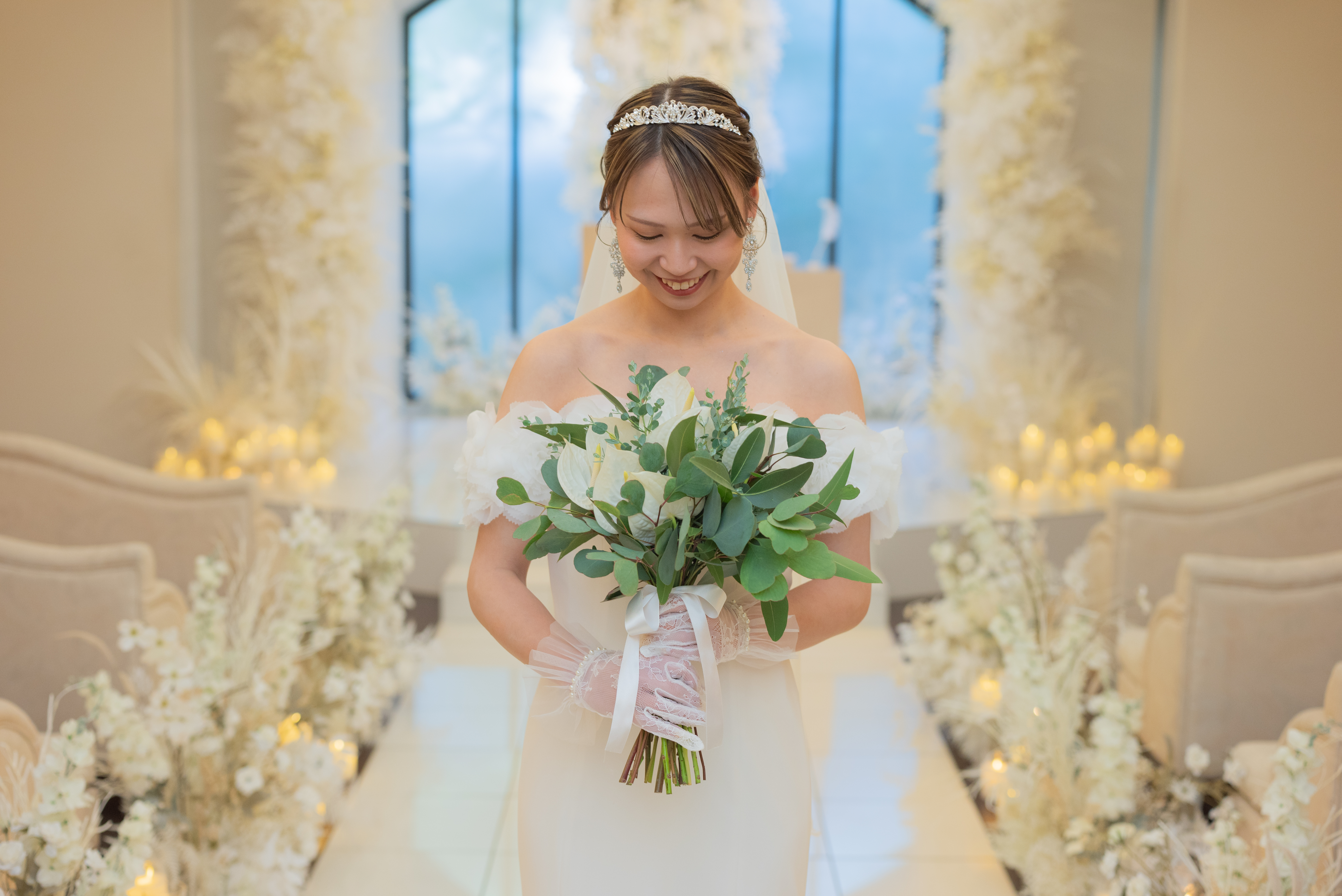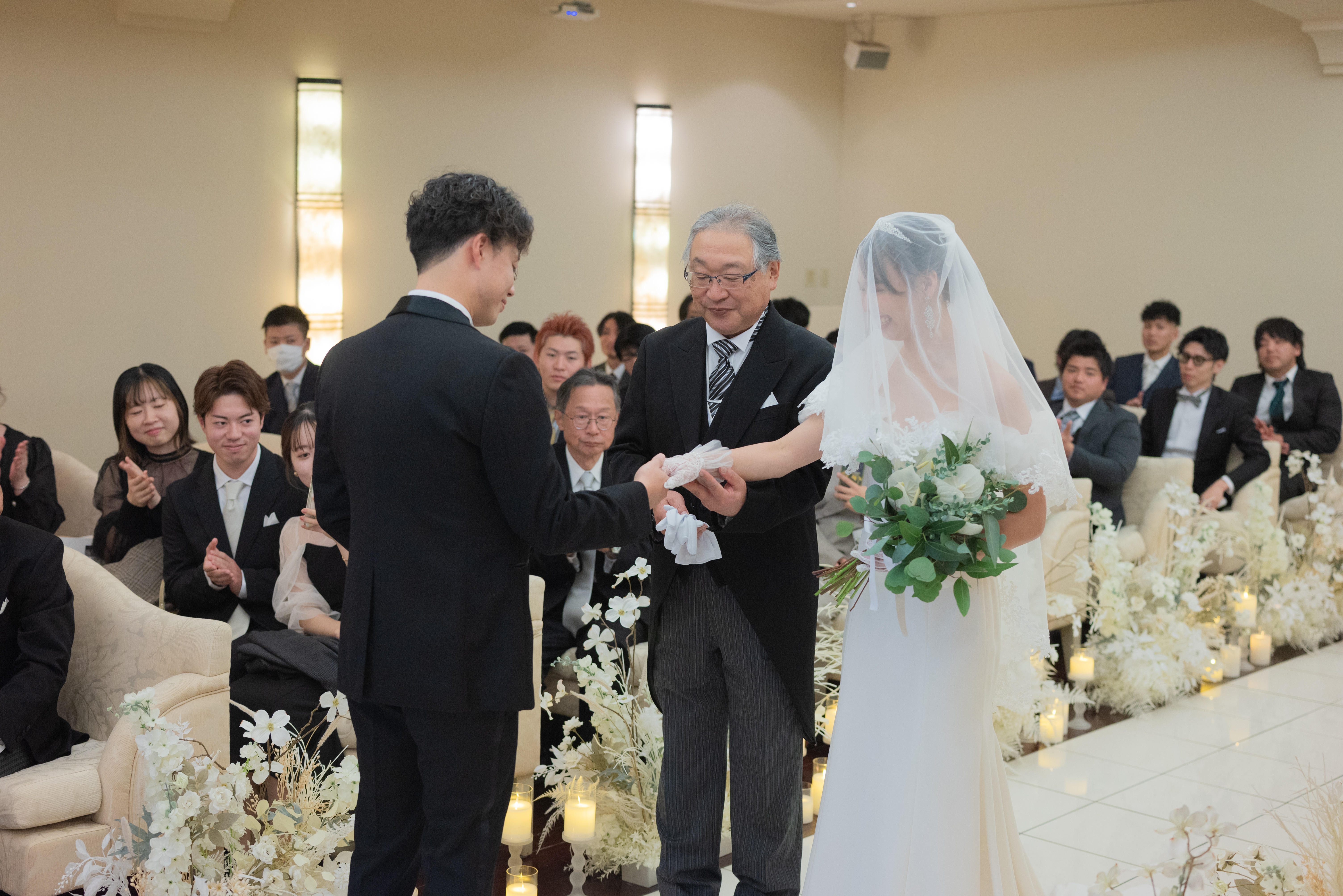 挙式前の「ファーストミート」で見せた少し照れくさそうな笑顔から始まり、お母様の手によるベールダウン、そしてお父様と歩まれた一歩一歩に、ご家族の深い愛情を感じずにはいられませんでした 。