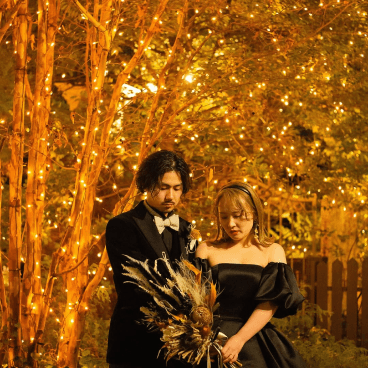 学生時代に吹奏楽部の勧誘で出会ったおふたりは明るくて笑顔が素敵な印象的。 「森の中にいるような結婚式を挙げたい」という想いからスタートしたスマイル準備。 " Night Garden Party"というスマイルコンセプトを大切にしながら、自分たちだけでなくゲスト全員が楽しめる1日を再現したいと考えていました。