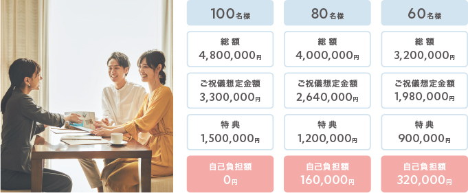 こちらをご覧いただいたおふたりには特別価格でご案内します。※40名様以上の結婚式をご成約の方