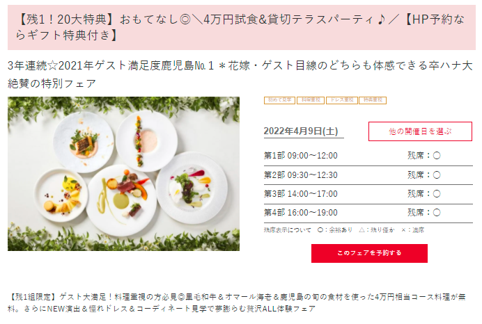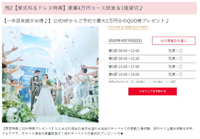 4/10(日)残2【挙式料&ドレス特典】豪華4万円コース試食&1組貸切♪