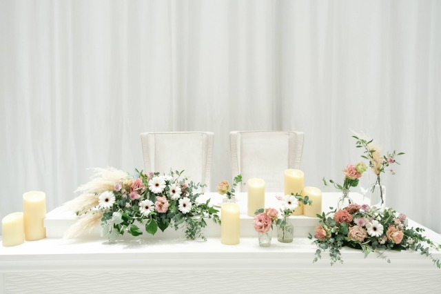 ご結婚式の時期に合わせて季節のお花や色味にしたり