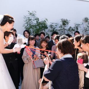 ブーケを投げるだけでなく ”ブーケプルズ”というリボンを引っ張るセレモニーも人気です★