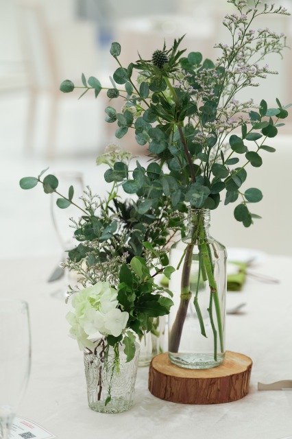 <ユーカリ×ブルーファンタジア×小瓶で高さアレンジ>