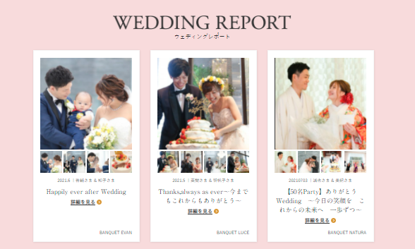 ホームページの「ウェディングレポート」でご紹介しております