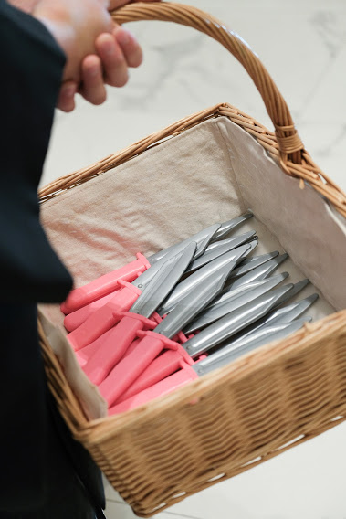 新郎新婦様が選んだ代表ゲストの方々にナイフをお渡しして