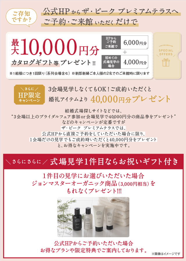 当公式ホームページでご予約いただくと、