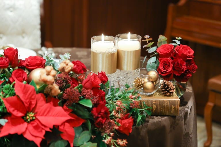 例えば代表的な「ポインセチア」を使ったコーディネートはいかがでしょうか?