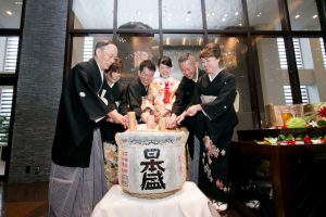 おふたりと親御様全員で日本酒の樽を開けていきます!
