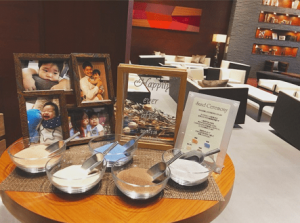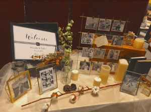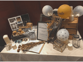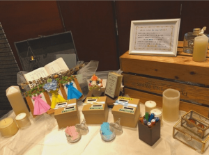 このスペースには毎回、新郎新婦様のこだわりのグッズをたくさん並べていただけます。