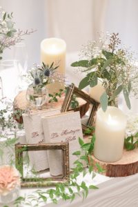 おふたりのお席は切り株やキャンドルを使ってナチュラルでお洒落ア