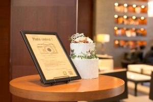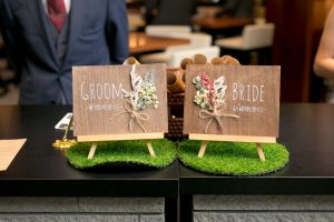 おふたりらしいウェルカムボードをはじめとするスペースを