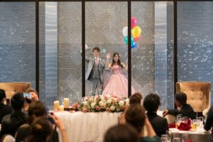◆披露宴はテラスからシャボン玉とバルーンでお洒落に入場