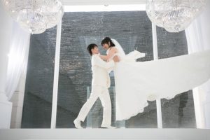 1階のラウンジでの撮影は洋装ドレスだけではなく和装での撮影も人気です