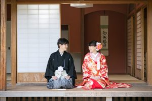 <玉里邸庭園>和装で茶室でのショット