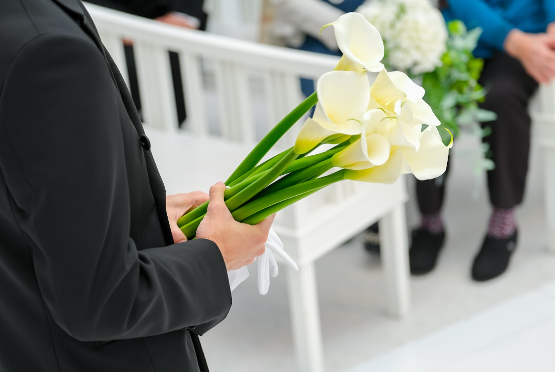 カラーなどの背の高いお花の形を生かし、茎の部分を自然に束ねたスタイルです。