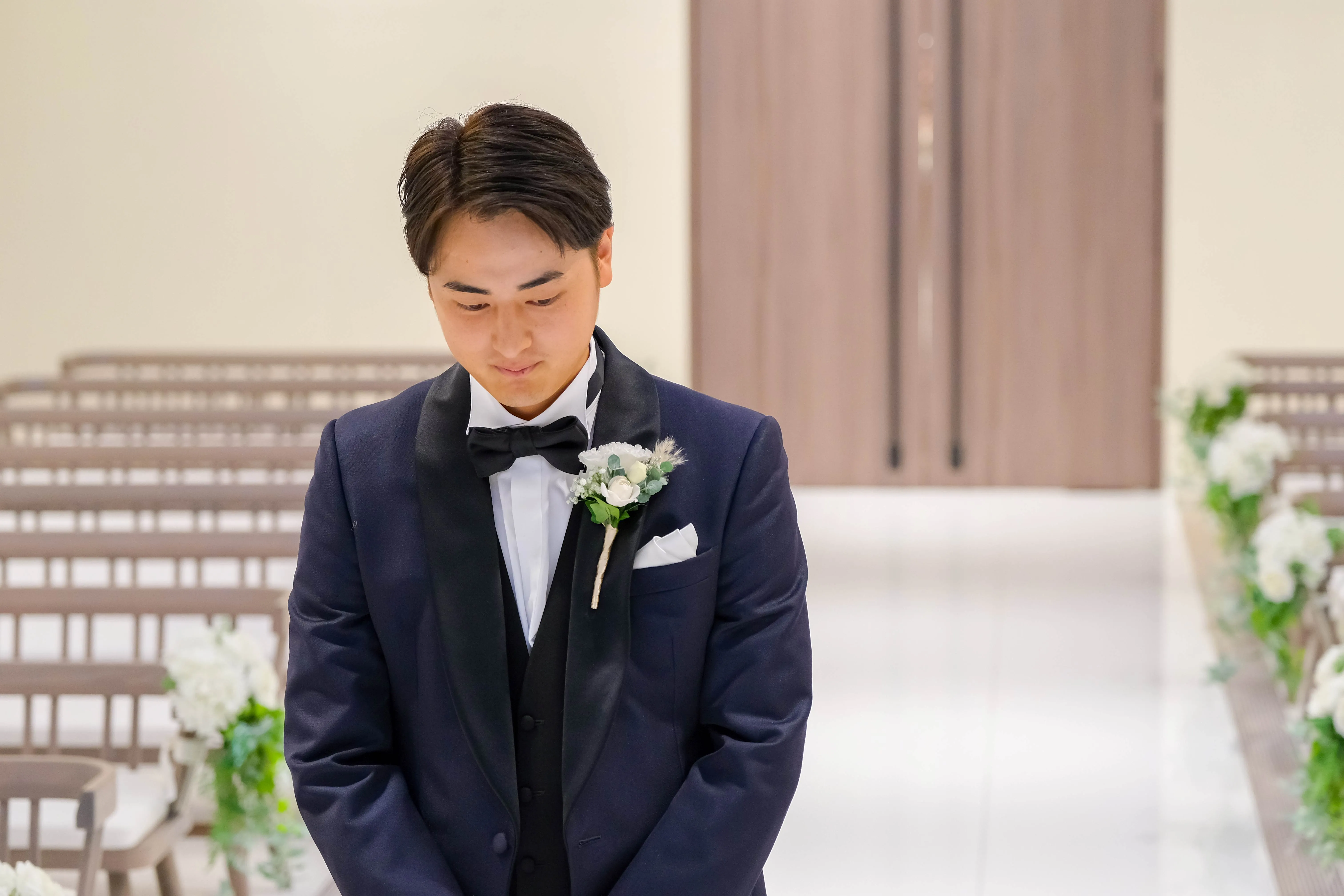 チャペルで待機している新郎様