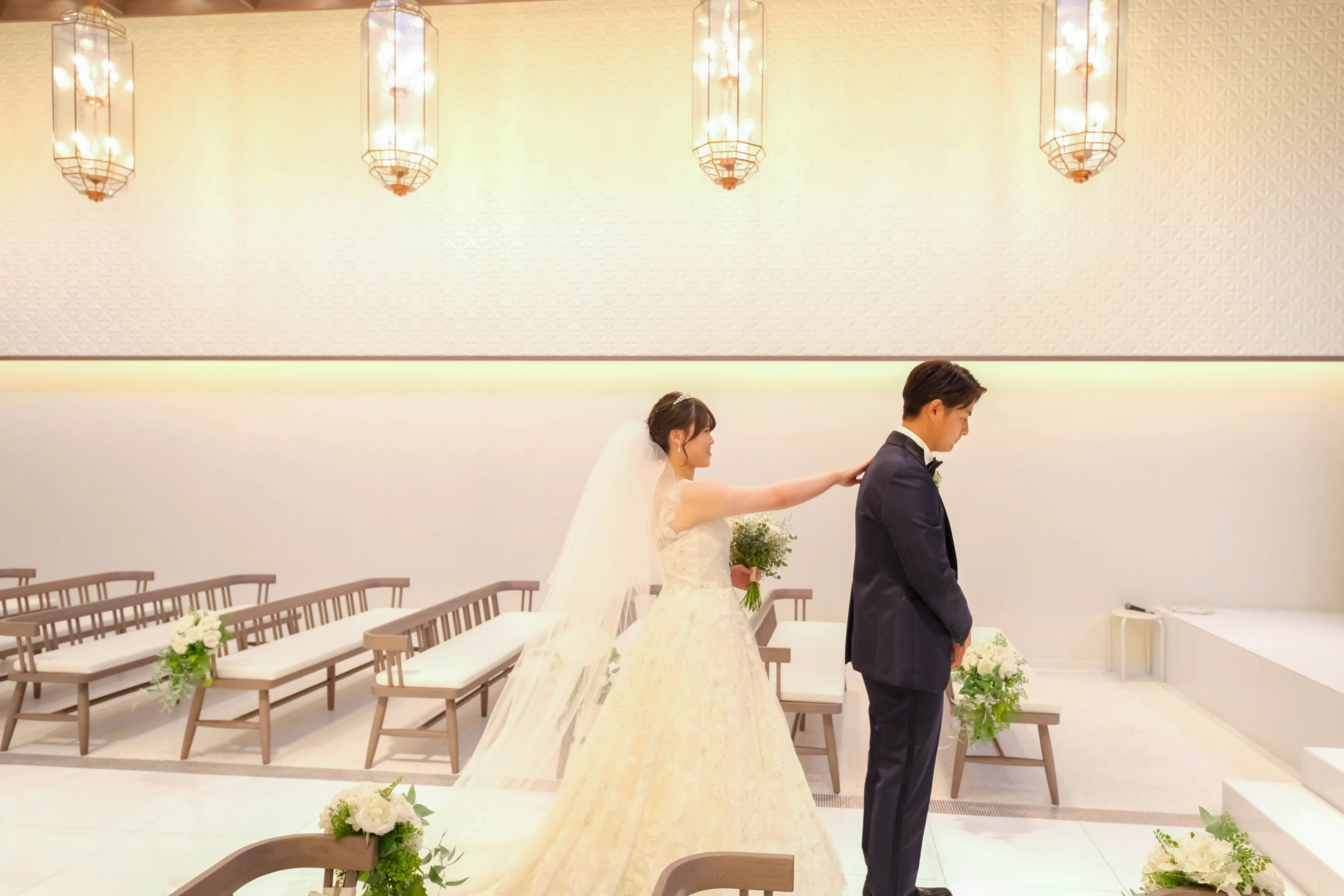 新婦様が新郎様の肩をトントン♪